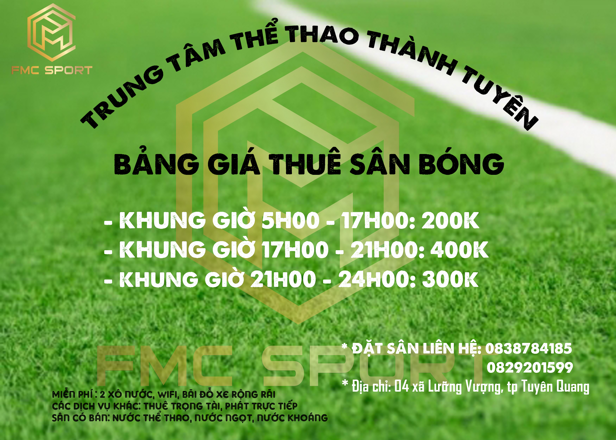 Sân bóng FMC lưỡng vượng khuyến mại giảm giá. Áp dụng từ ngày 18/6/2022
